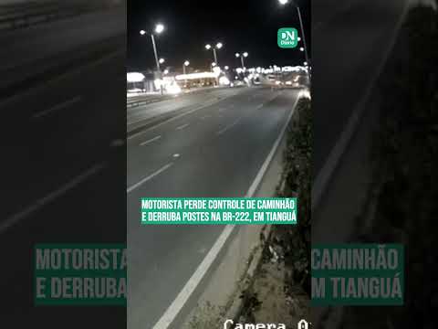 O motorista de um caminhão perdeu o controle do veículo e derrubou diversos postes na BR-222, no município de Tianguá, no Ceará, na madrugada deste sábado (27). O acidente ocorreu por volta de 3h. Ninguém ficou ferido, conforme informações da Polícia Rodoviária Federal (PRF). Um vídeo mostra o momento em que o caminhão se aproxima da barreira divisória das vias da rodovia e colide com um poste com velocidade. Antes de desacelerar e parar, o caminhão derrubou quatro postes. Não há informações sobre os motivos do acidente. O veículo é originário de Teresina, no Piauí.